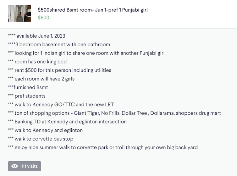 The wording in the ads seems innocuous, but many can be discriminatory and prey on international students. Landlords often demand large upfront payments. And international students are often sought because their relatively recent arrival in Canada and temporary migration status means they are less likely to complain.