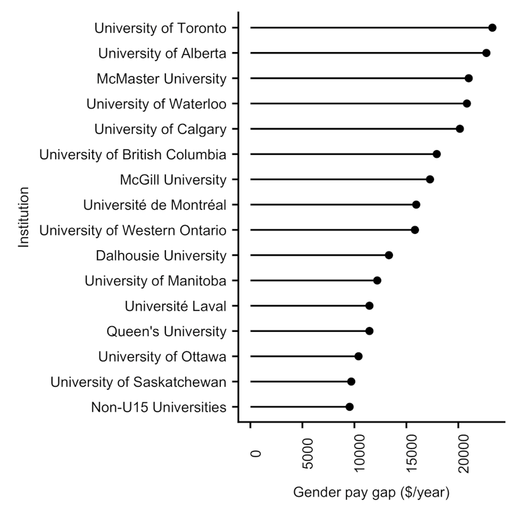 The University of Toronto is not alone in paying female professors less. There is still a gender pay gap at nearly all Canadian universities, with especially big gaps at Canada’s 15 research-intensive universities, known as the U15.